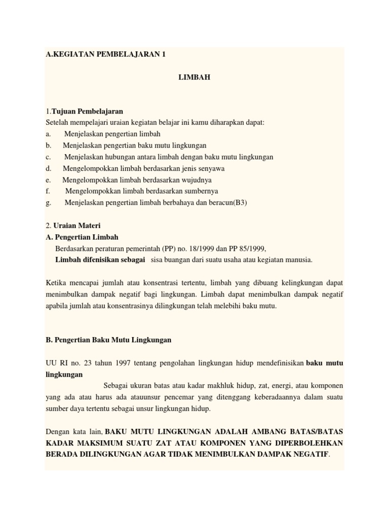 Adapun penjelasan macam-macam limbah adalah sebagai berikut. Limbah adalah sisa dari suatu usaha maupun kegiatan yang mengandung bahan berbahayaberacun yang dapat membahayakan lingkungan kesehatan kelangsungan hidup manusia dan makhluk hidup lainnya. Limbah bahan berbahaya dan beracun.