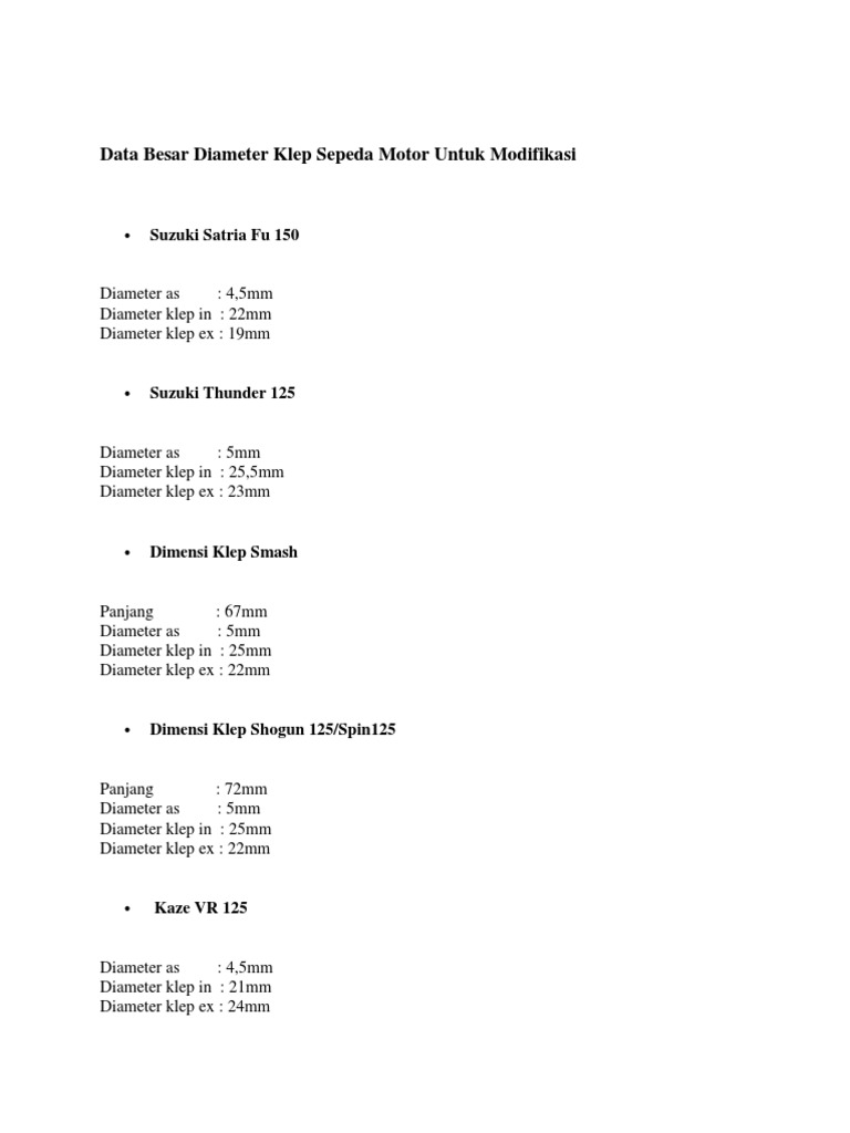 Ukuran Diameter Klep Speda Motor Standar Pabrik Kum3n Com