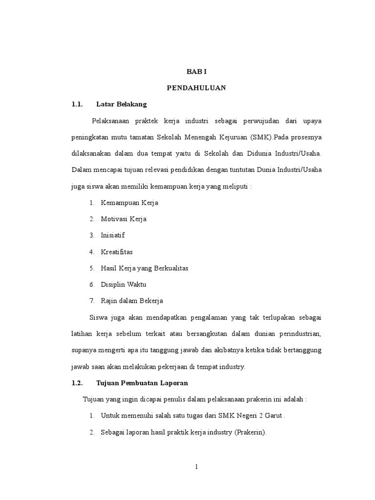 Dan juga memberi laporan tentang hal-hal yang harus ada untuk pelayanan bagi para pelanggan. Setelah melakukan prakerin selama tiga bulan siswa diwajibkan untuk membuat laporan sebagai tanggung jawab masing-masing individu dalam hal ini penulis membuat laporan tentang. Contoh Laporan Prakerin 3.