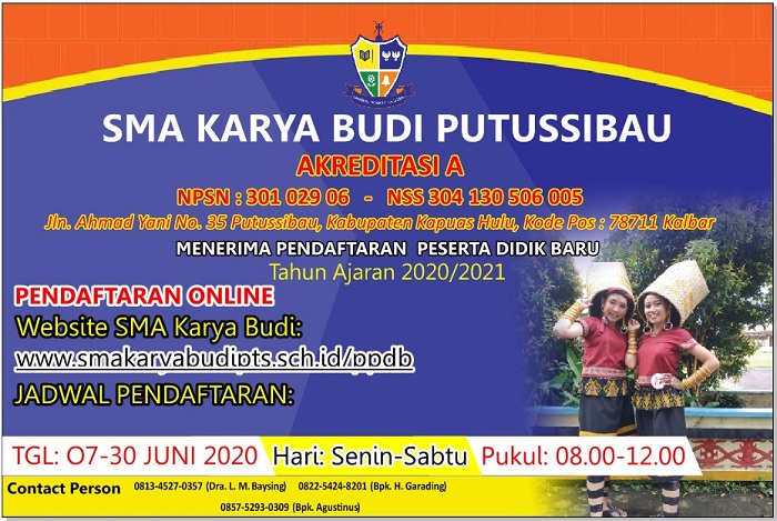 Semanagat-asa perjuangan itu merupakan dedikasi yang seutuhnya untuk menghidup semangat mendidik tanpa batas. SMA Karya Budi Putussibau Alamat lengkap Jl Kom L Yos Sudarso Pts Puttussibau Putussibau Kota Kota Putussibau KabupatenKota Putussibau Kode pos 78711 Nomor teleponHP 6256721288 SMA Karya Budi. Tanggal 18 Jan 2017 Dibaca266 kali.